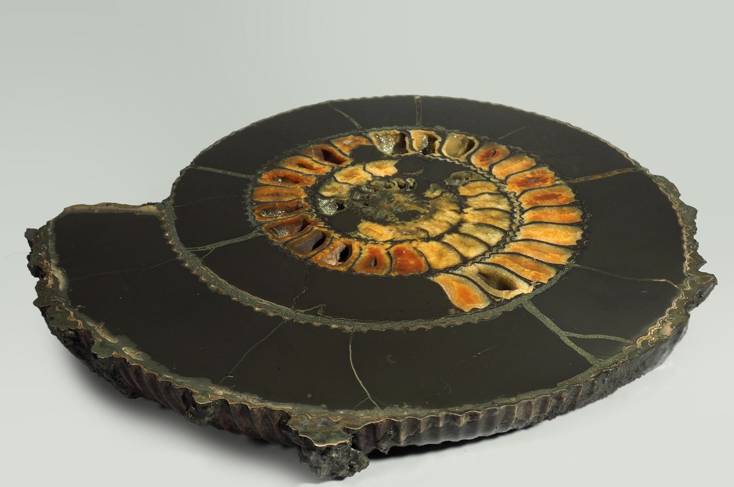 Аммонит пиритизированный, полированный срез 31,5х28х4 см - «globural.ru» - Саяногорск