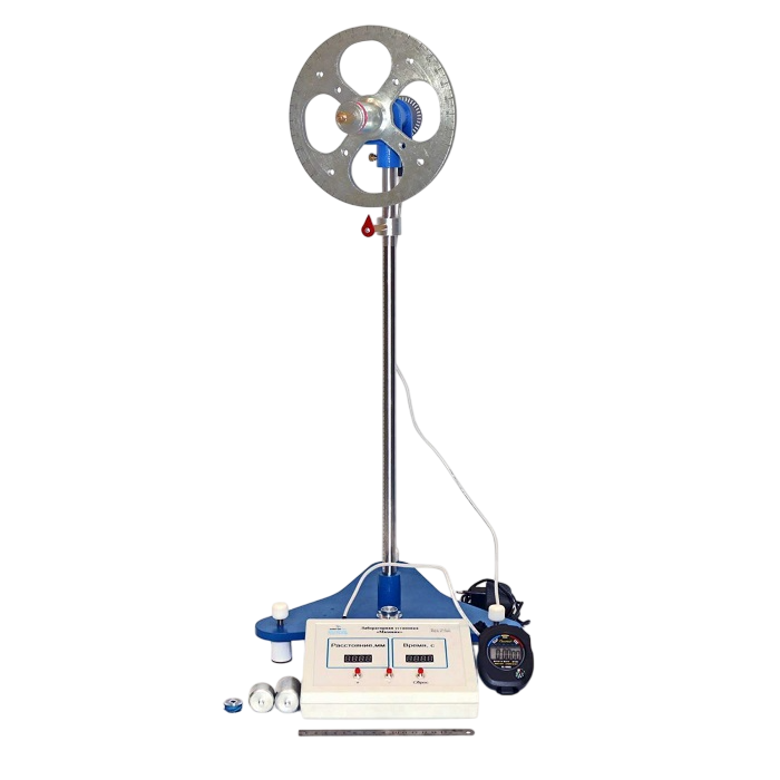 Лабораторная установка предназначена для изучения правил определения момента инерции маховика при его вращательном движении экспериментальным методом двумя способами, определения ускорения поступательного движения груза, изучения устройства и принципа работы маятника типа «Маховик».